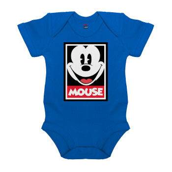 Mickey Mouse, Βρεφικό φορμάκι μωρού, Μπλε Κοβαλτίου, 100% Organic Cotton, κοντομάνικο