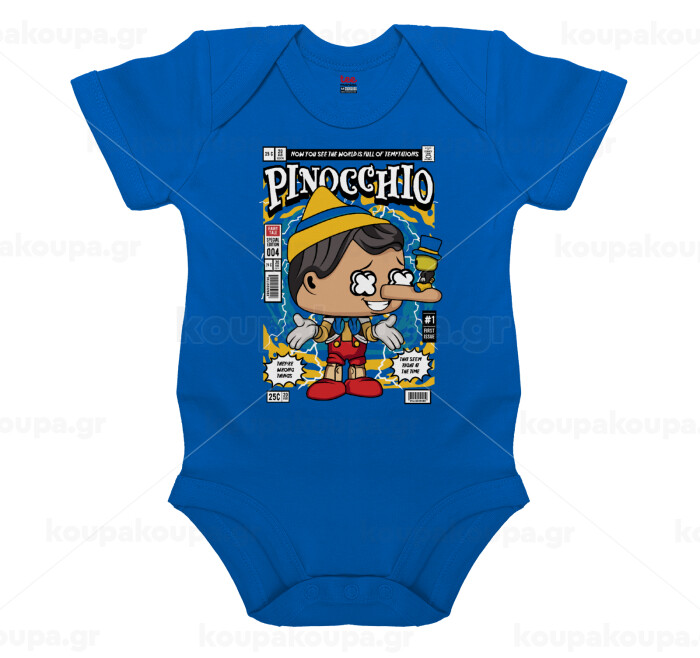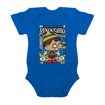 Pinocchio, Βρεφικό φορμάκι μωρού, Μπλε Κοβαλτίου, 100% Organic Cotton, κοντομάνικο