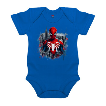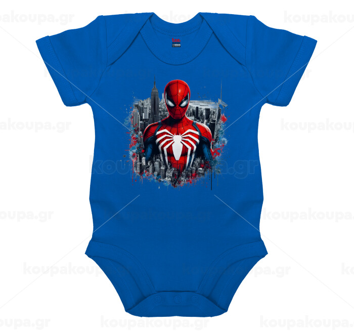 Spiderman City, Βρεφικό φορμάκι μωρού, Μπλε Κοβαλτίου, 100% Organic Cotton, κοντομάνικο