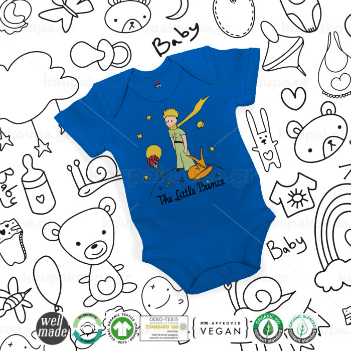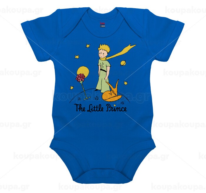 The Little prince classic, Βρεφικό φορμάκι μωρού, Μπλε Κοβαλτίου, 100% Organic Cotton, κοντομάνικο