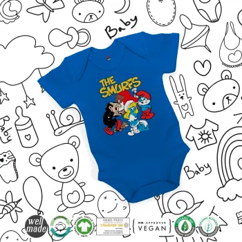 The smurfs, Βρεφικό φορμάκι μωρού, Μπλε Κοβαλτίου, 100% Organic Cotton, κοντομάνικο