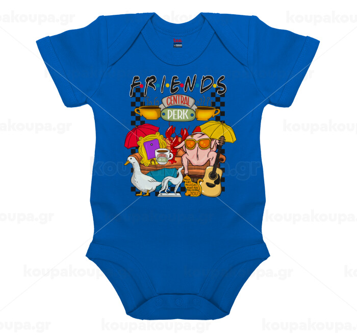 Friends, Βρεφικό φορμάκι μωρού, Μπλε Κοβαλτίου, 100% Organic Cotton, κοντομάνικο