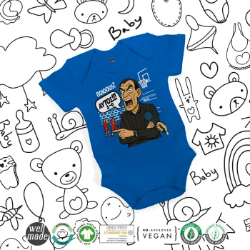 Μπαρτζό, Ποιος? Αυτός!!! 1-0, Βρεφικό φορμάκι μωρού, Μπλε Κοβαλτίου, 100% Organic Cotton, κοντομάνικο