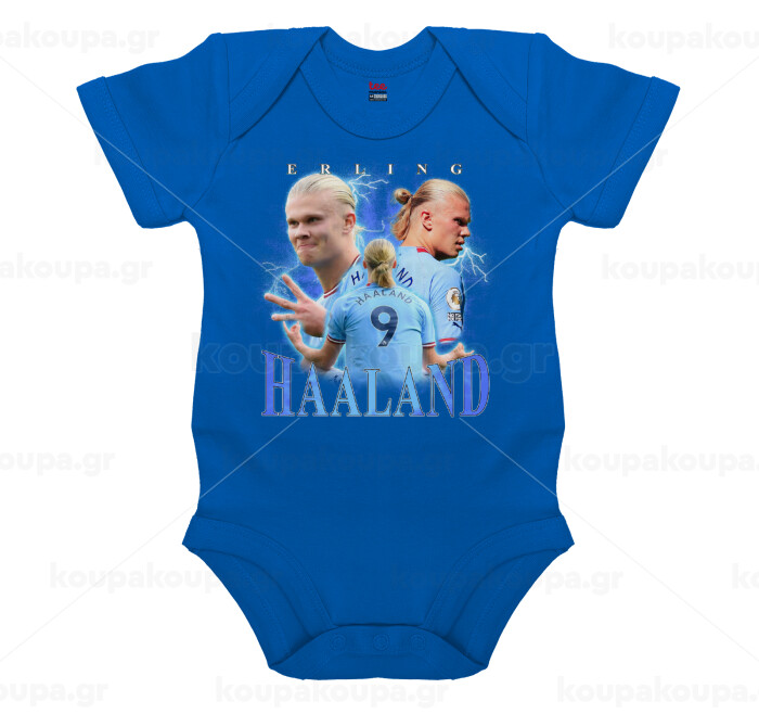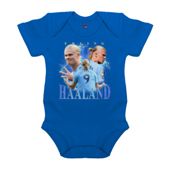 Erling Haaland, Βρεφικό φορμάκι μωρού, Μπλε Κοβαλτίου, 100% Organic Cotton, κοντομάνικο