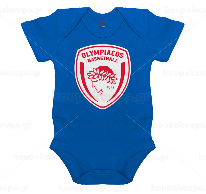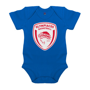 Olympiacos B.C., Βρεφικό φορμάκι μωρού, Μπλε Κοβαλτίου, 100% Organic Cotton, κοντομάνικο