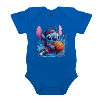 Stitch Basketball, Βρεφικό φορμάκι μωρού, Μπλε Κοβαλτίου, 100% Organic Cotton, κοντομάνικο