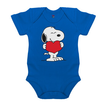 Snoopy takemy heart, Βρεφικό φορμάκι μωρού, Μπλε Κοβαλτίου, 100% Organic Cotton, κοντομάνικο
