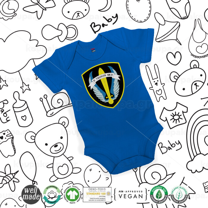Έμβλημα Μονάδων Καταδρομών Ο Τολμων Νικα - Λοκ, Βρεφικό φορμάκι μωρού, Μπλε Κοβαλτίου, 100% Organic Cotton, κοντομάνικο