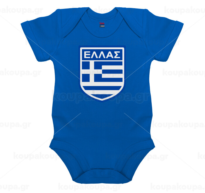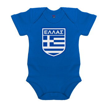 Hellas, Βρεφικό φορμάκι μωρού, Μπλε Κοβαλτίου, 100% Organic Cotton, κοντομάνικο