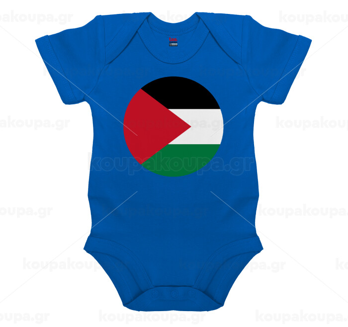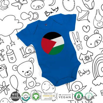 Palestine Flag, Βρεφικό φορμάκι μωρού, Μπλε Κοβαλτίου, 100% Organic Cotton, κοντομάνικο