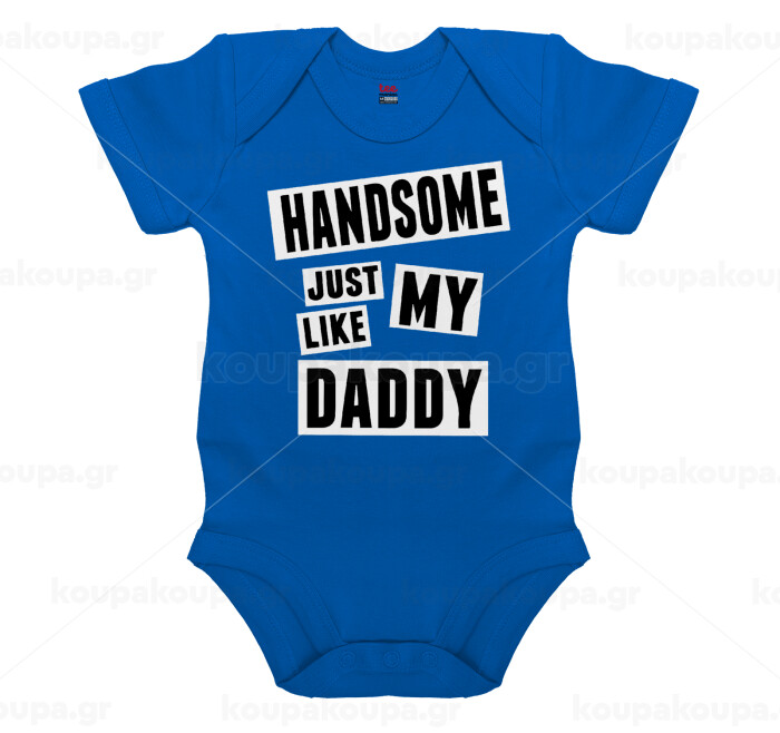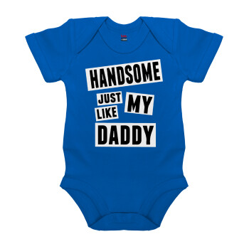 Handsome just like my Daddy, Βρεφικό φορμάκι μωρού, Μπλε Κοβαλτίου, 100% Organic Cotton, κοντομάνικο