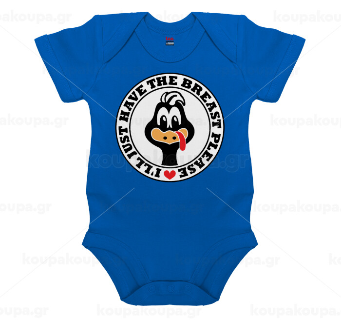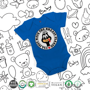 I'll Just Have The Breast Please, Βρεφικό φορμάκι μωρού, Μπλε Κοβαλτίου, 100% Organic Cotton, κοντομάνικο