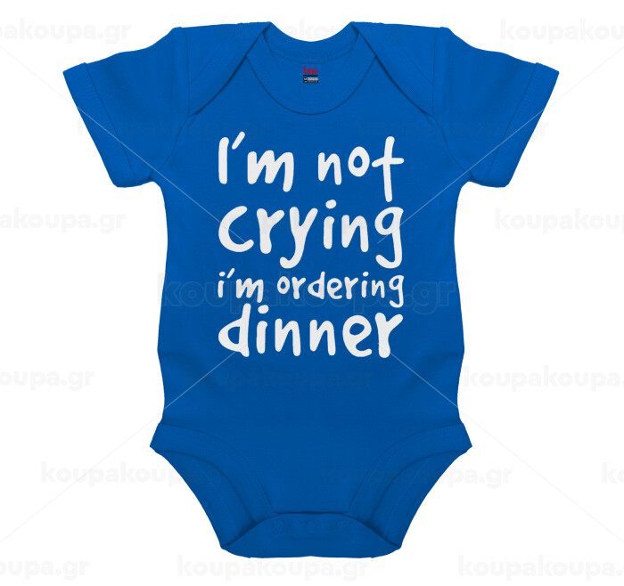 I'm Not Crying I'm Ordering Dinner, Βρεφικό φορμάκι μωρού, Μπλε Κοβαλτίου, 100% Organic Cotton, κοντομάνικο
