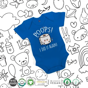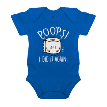 Poops!...I Did It Again, Βρεφικό φορμάκι μωρού, Μπλε Κοβαλτίου, 100% Organic Cotton, κοντομάνικο