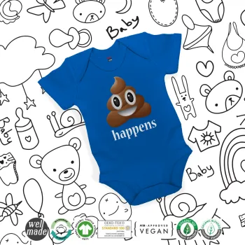 Shit Happens, Βρεφικό φορμάκι μωρού, Μπλε Κοβαλτίου, 100% Organic Cotton, κοντομάνικο