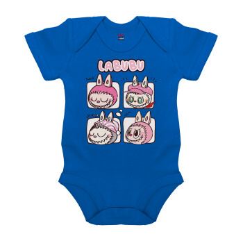 Labubu pink, Βρεφικό φορμάκι μωρού, Μπλε Κοβαλτίου, 100% Organic Cotton, κοντομάνικο