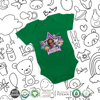 Gabby Dollhouse, Βρεφικό φορμάκι μωρού, ΠΡΑΣΙΝΟ, 100% Organic Cotton, κοντομάνικο