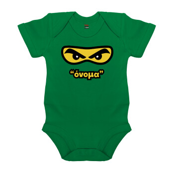 Ninja Eyes με όνομα, Βρεφικό φορμάκι μωρού, ΠΡΑΣΙΝΟ, 100% Organic Cotton, κοντομάνικο