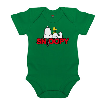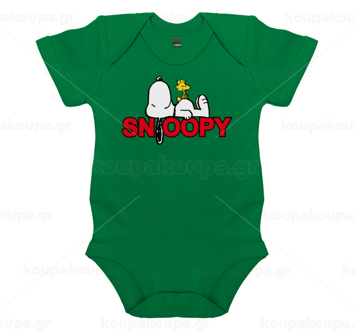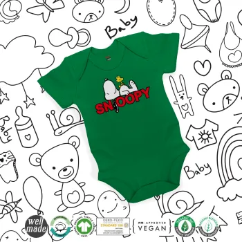Snoopy sleep, Βρεφικό φορμάκι μωρού, ΠΡΑΣΙΝΟ, 100% Organic Cotton, κοντομάνικο