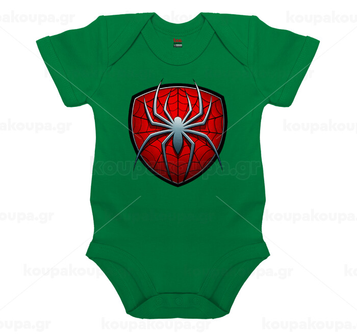 Spider-man, Βρεφικό φορμάκι μωρού, ΠΡΑΣΙΝΟ, 100% Organic Cotton, κοντομάνικο