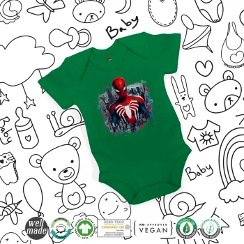 Fabric Weight: 200 g/m²Material: 100% Organic Cotton, ring-spun and combed for a soft textureTreatment: Pre-washed to prevent shrinkageStyle: American-style bodysuit for easy applicationDetails: Rib-knit cuffs for better fitFasteners: 3 nickel-free buttons at the bottom for easy diaper changes, color matched to the fabric