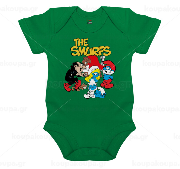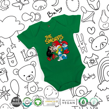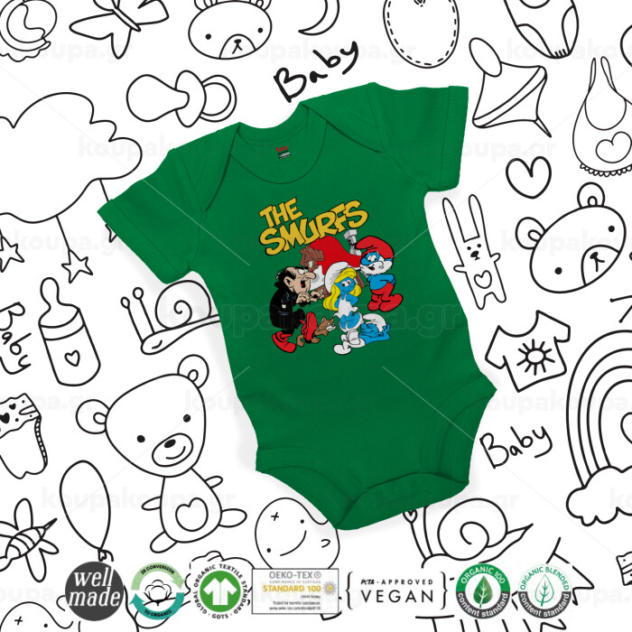 The smurfs, Βρεφικό φορμάκι μωρού, ΠΡΑΣΙΝΟ, 100% Organic Cotton, κοντομάνικο
