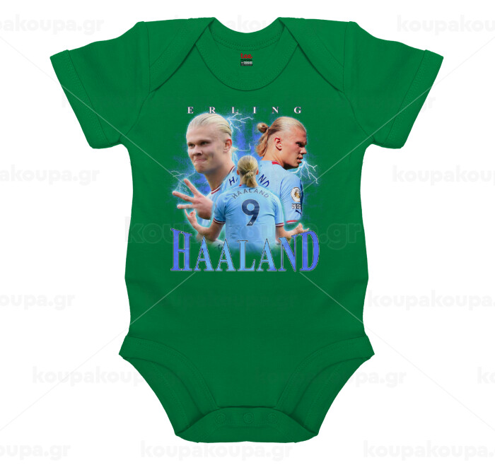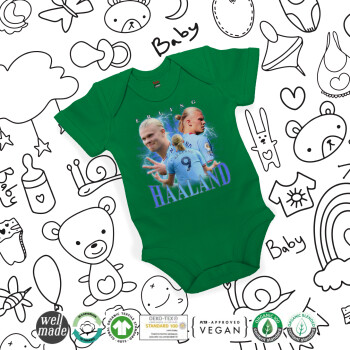 Erling Haaland, Βρεφικό φορμάκι μωρού, ΠΡΑΣΙΝΟ, 100% Organic Cotton, κοντομάνικο