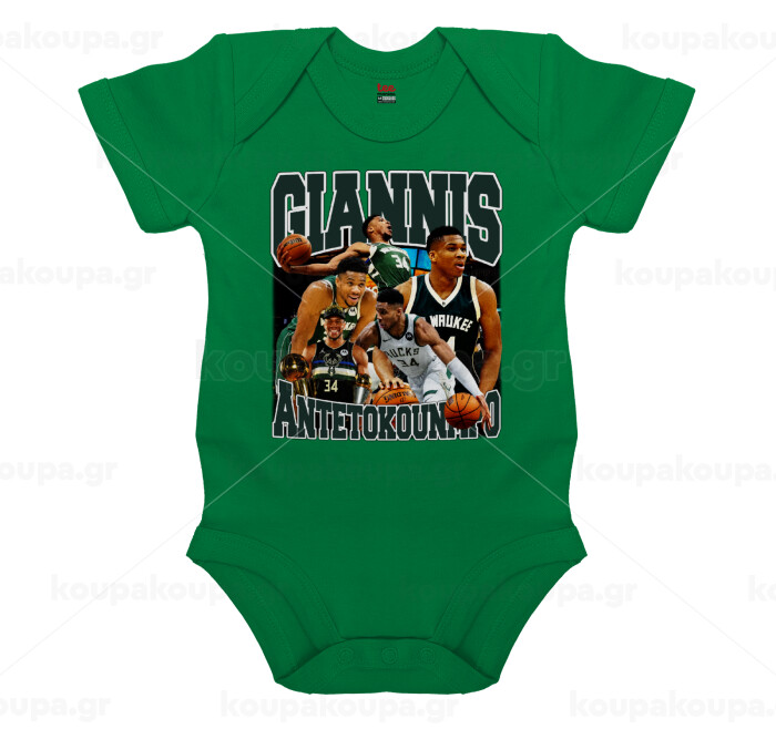 Giannis Antetokounmpo, Βρεφικό φορμάκι μωρού, ΠΡΑΣΙΝΟ, 100% Organic Cotton, κοντομάνικο