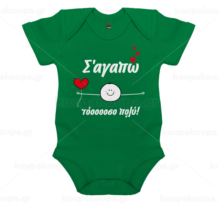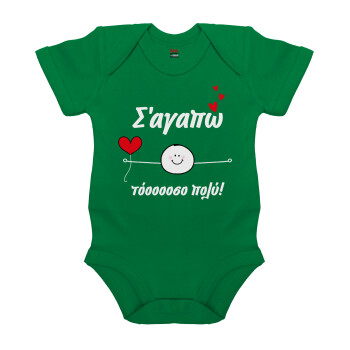 Σ΄αγαπώ τόοοοσο πολύ (Αγόρι)!!!, Βρεφικό φορμάκι μωρού, ΠΡΑΣΙΝΟ, 100% Organic Cotton, κοντομάνικο