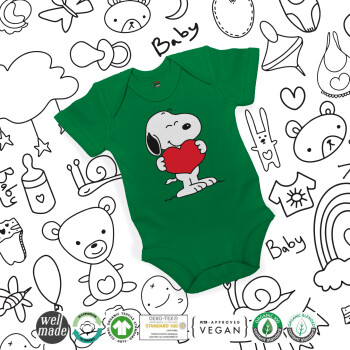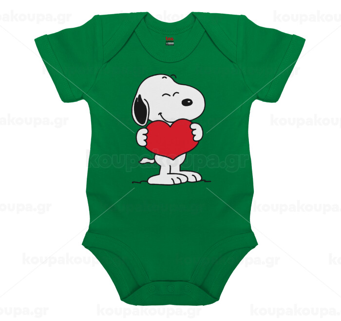Snoopy takemy heart, Βρεφικό φορμάκι μωρού, ΠΡΑΣΙΝΟ, 100% Organic Cotton, κοντομάνικο