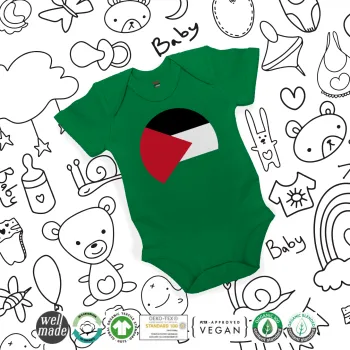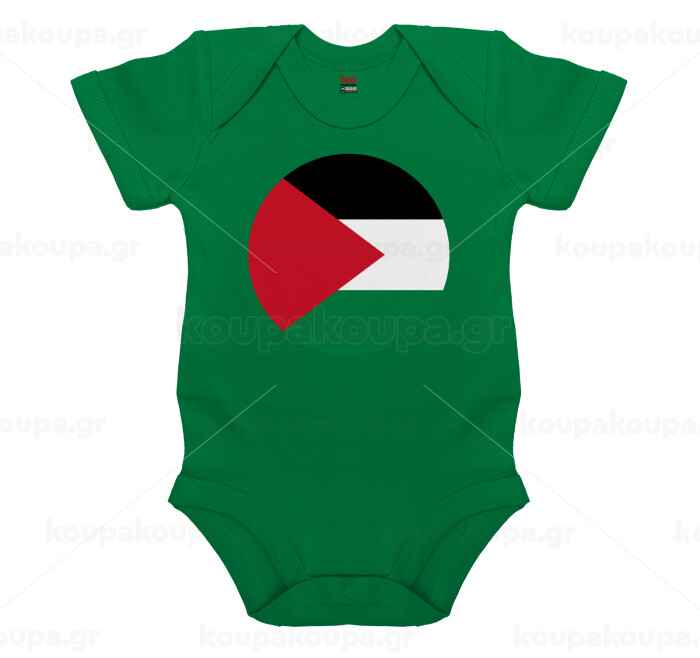 Palestine Flag, Βρεφικό φορμάκι μωρού, ΠΡΑΣΙΝΟ, 100% Organic Cotton, κοντομάνικο