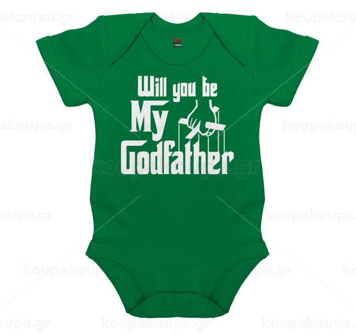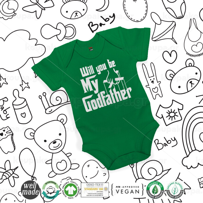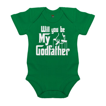 Will You Be My Godfather, Βρεφικό φορμάκι μωρού, ΠΡΑΣΙΝΟ, 100% Organic Cotton, κοντομάνικο