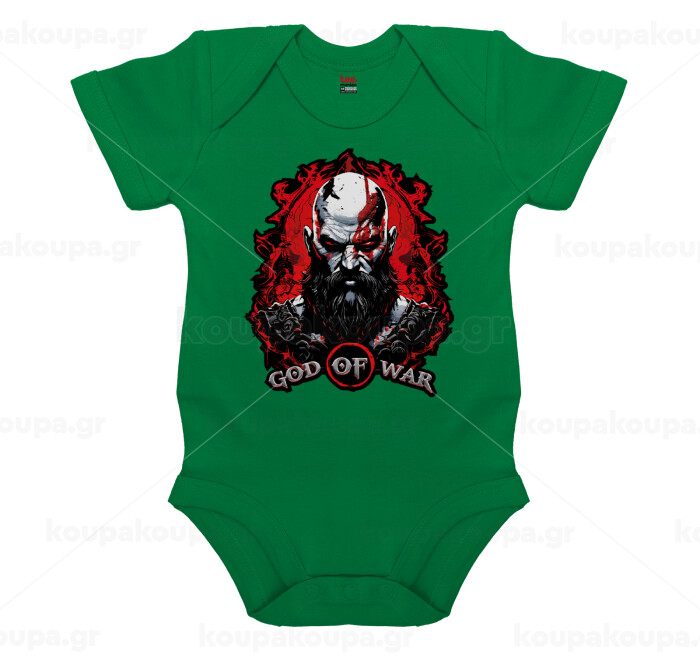 God of war, Βρεφικό φορμάκι μωρού, ΠΡΑΣΙΝΟ, 100% Organic Cotton, κοντομάνικο