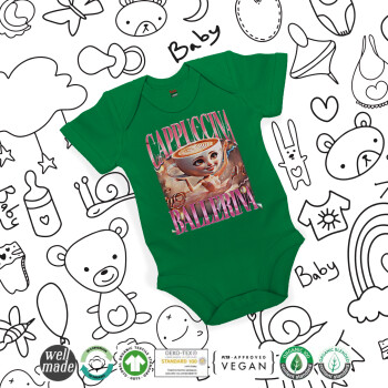 BALLERINA CAPUCHINA FUNK, Βρεφικό φορμάκι μωρού, ΠΡΑΣΙΝΟ, 100% Organic Cotton, κοντομάνικο