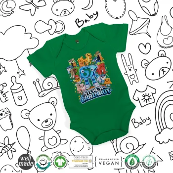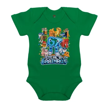 Steal a Brainrot Six Seven, Βρεφικό φορμάκι μωρού, ΠΡΑΣΙΝΟ, 100% Organic Cotton, κοντομάνικο