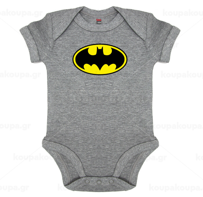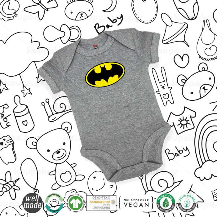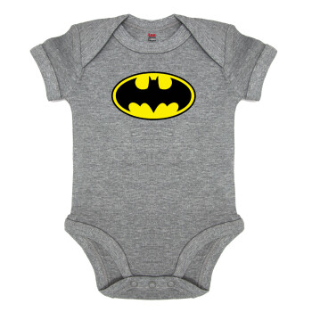 Batman, Βρεφικό φορμάκι μωρού, 0-18 μηνών, ΓΚΡΙ ΜΕΛΑΝΖΕ, 100% Organic Cotton, κοντομάνικο