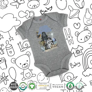 Star Wars, Βρεφικό φορμάκι μωρού, 0-18 μηνών, ΓΚΡΙ ΜΕΛΑΝΖΕ, 100% Organic Cotton, κοντομάνικο