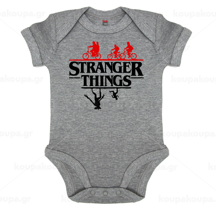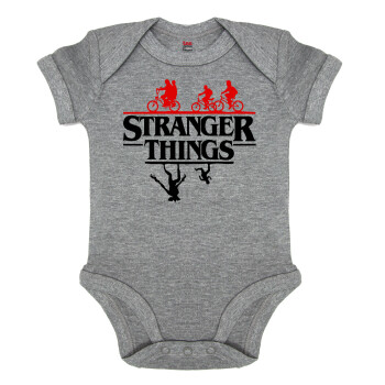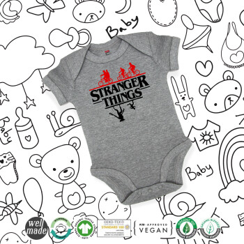 Stranger Things upside down, Βρεφικό φορμάκι μωρού, 0-18 μηνών, ΓΚΡΙ ΜΕΛΑΝΖΕ, 100% Organic Cotton, κοντομάνικο