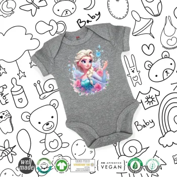 Elsa Princess, Βρεφικό φορμάκι μωρού, 0-18 μηνών, ΓΚΡΙ ΜΕΛΑΝΖΕ, 100% Organic Cotton, κοντομάνικο
