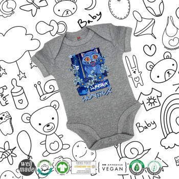 Huntrix Derpy the blue tiger, Βρεφικό φορμάκι μωρού, 0-18 μηνών, ΓΚΡΙ ΜΕΛΑΝΖΕ, 100% Organic Cotton, κοντομάνικο