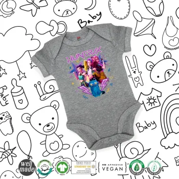 Huntrix K-pop series, Βρεφικό φορμάκι μωρού, 0-18 μηνών, ΓΚΡΙ ΜΕΛΑΝΖΕ, 100% Organic Cotton, κοντομάνικο