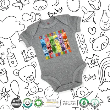 Inside Out It's Okay To Feel All The Feels , Βρεφικό φορμάκι μωρού, 0-18 μηνών, ΓΚΡΙ ΜΕΛΑΝΖΕ, 100% Organic Cotton, κοντομάνικο