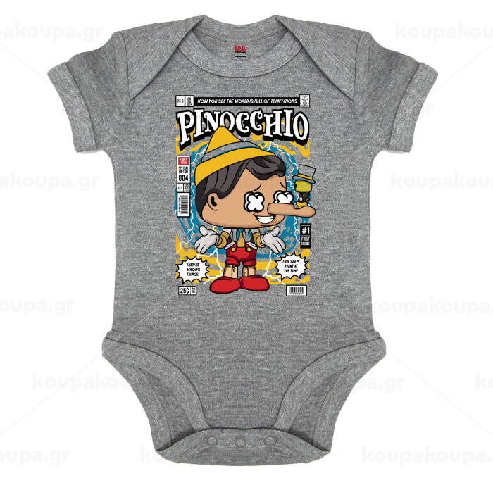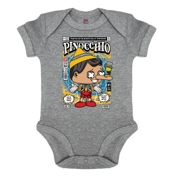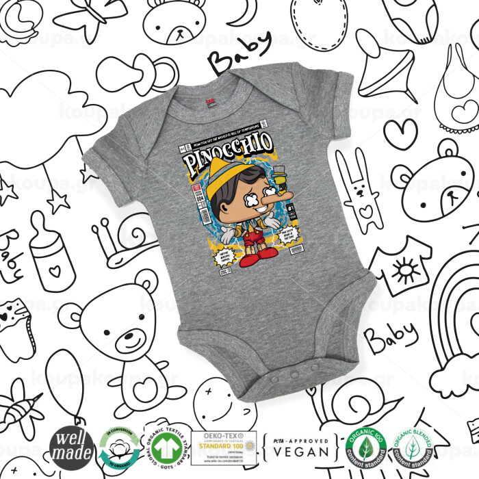 Pinocchio, Βρεφικό φορμάκι μωρού, 0-18 μηνών, ΓΚΡΙ ΜΕΛΑΝΖΕ, 100% Organic Cotton, κοντομάνικο