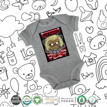 Iron maiden (eddie), Βρεφικό φορμάκι μωρού, 0-18 μηνών, ΓΚΡΙ ΜΕΛΑΝΖΕ, 100% Organic Cotton, κοντομάνικο