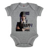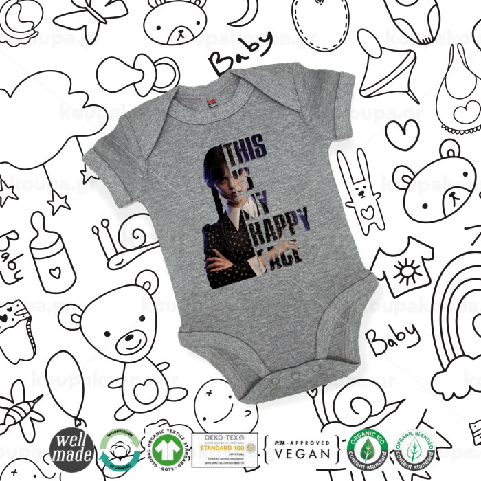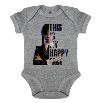 Wednesday, This is my happy face, Βρεφικό φορμάκι μωρού, 0-18 μηνών, ΓΚΡΙ ΜΕΛΑΝΖΕ, 100% Organic Cotton, κοντομάνικο