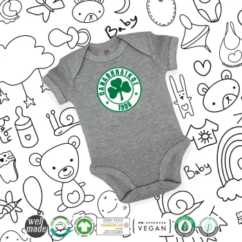 ΠΑΟ Παναθηναϊκός, Βρεφικό φορμάκι μωρού, 0-18 μηνών, ΓΚΡΙ ΜΕΛΑΝΖΕ, 100% Organic Cotton, κοντομάνικο