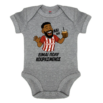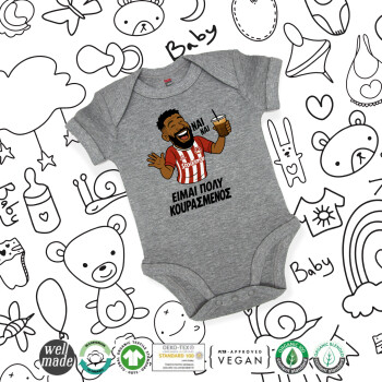 Ροντινέι, "ΠΟΛΥ ΚΟΥΡΑΣΜΕΝΟΣ", Βρεφικό φορμάκι μωρού, 0-18 μηνών, ΓΚΡΙ ΜΕΛΑΝΖΕ, 100% Organic Cotton, κοντομάνικο