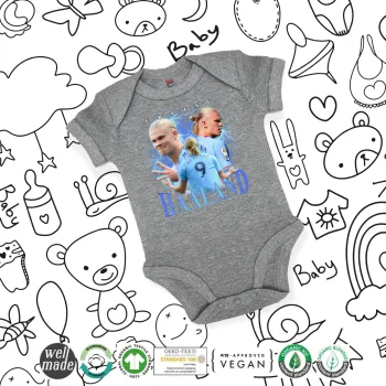 Erling Haaland, Βρεφικό φορμάκι μωρού, 0-18 μηνών, ΓΚΡΙ ΜΕΛΑΝΖΕ, 100% Organic Cotton, κοντομάνικο