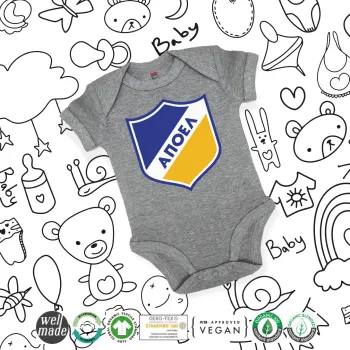 FC ΑΠΟΕΛ Λευκωσίας, Βρεφικό φορμάκι μωρού, 0-18 μηνών, ΓΚΡΙ ΜΕΛΑΝΖΕ, 100% Organic Cotton, κοντομάνικο