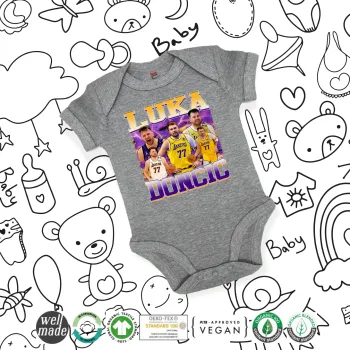 Luka Doncic Basketball , Βρεφικό φορμάκι μωρού, 0-18 μηνών, ΓΚΡΙ ΜΕΛΑΝΖΕ, 100% Organic Cotton, κοντομάνικο